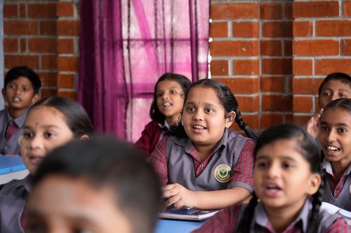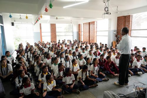 Students assemble for morning prayer, a few moments of guided meditation, and the national anthem, setting a tone of focus and respect for the day ahead. The students also share daily news to keep themselves updated about their world beyond school.